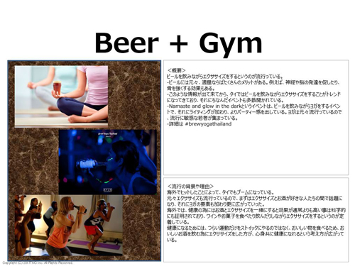 トレンドウォッチャーから上がってきたトレンドは「ビールを飲みながら楽しむヨガ」「インスタントカメラ気分を味わえるスマホアプリ」「自分を高めるための語学以外の習い事」などなど、WEBの情報だけでは見えてこない事例も多く、バンコクの若者が今何を求めているのかの一端を知ることができる内容となりました。