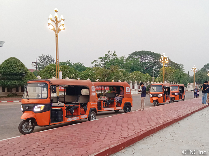 EVであってもトゥクトゥクスタイルで観光気分を味わうことができ、また主要な観光スポットやショッピングサイトには常に数台が待機しているため利便性が高い。現在ラオス国内のEVトゥクトゥクの運営はKokkok MOVEのみで一択という感じではあるが、特に外国人旅行者の利用が多く、ローカルのラオス人利用者も増加している。
