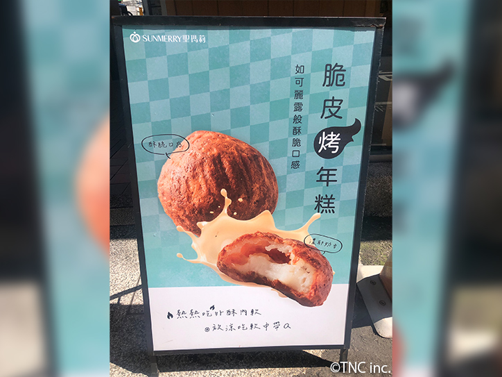 2025年は、Threads発のグルメがZ世代の間で瞬く間に拡散される現象が際立った。特に「台湾のカヌレ」と呼ばれる新食感スイーツ「脆皮烤年糕」 が大きな話題に。外側はカヌレのように香ばしく、中にはミルクの風味がある餅米ベースの餅が入っており、「焼き立てはサクサク、冷ますとモチモチになる」「外カリ中モチのギャップがクセになる」といった口コミがThreadsで急速に拡散。大手ベーカリーチェーン「聖瑪莉」 では類似商品が累計100万個以上を販売。その他のベーカリーチェーンやケーキ店でもバリエーション商品が次々と登場した。さらに、台湾の大手食品・流通企業「統一」 は、2024年エイプリルフール企画として公開した「プリンのカラメルと本体が逆転した商品」として「翻轉布丁」 を2025年10月に正式発売。これが累計52万個を突破し、予約数が販売予定を上回って購入できない人が続出するほどの人気となった。