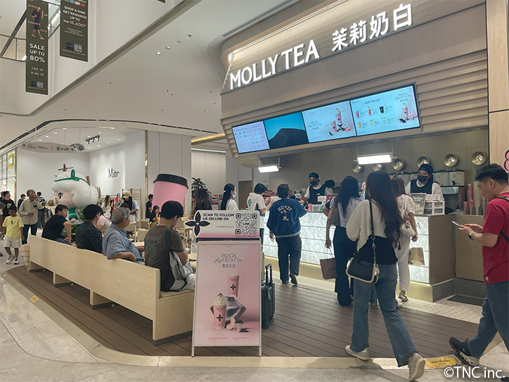タロイモ・モチ・ミルクティー人気の背景には、中国のミルクティー店「AH MA HANDMADE」の影響がある。同店は近年タイ人の間で上海旅行の必須スポットとして知られ、行列のできる美味しいミルクティーとしてSNSで話題になっていた。類似のドリンクがタイのミルクティーに登場し、歓迎されている。同店はタイ未上陸だが、近年中国ブランドのミルクティー店が続々タイに進出している。「CHAGEE」、「MOLLY TEA」、「MIXUE」、「NAIXUE」などがあり、いずれもタイ人利用者で賑わっている。中国のミルクティー店をタイ人と中国人がリブランディングしたミルクティー店「JIAN CHA」はフルーツティーなどがあり、2024年2月の開業から1年ほどで支店を24店に拡大。中国火鍋ブームに続いて、中国のミルクティーがトレンドを迎えている。中国の影響は食にとどまらず、2023年頃から中国風メイクの”Douyin”が話題になっている。中国ブランドのメイク商品もEC大手のShopeeやLazadaで購入可能。2024年半ばからは人気ブランド「JUDYDOLL」が大手コスメストアで店頭販売を始めている。