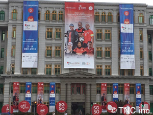 建国50周年(SG50)にあたる2015年は、3月に建国の父・リークアンユー氏が亡くなったことも重なり、シンガポールにとって節目の年となった。8月9日のナショナルデーパレードに向け、街にはSG50の看板やロゴが溢れた。また、イベントやプロモーションだけでなく、シンガポール国民、外国人労働者に関わらず、2015年支払い分の個人所得税50%オフや、2015年に生まれた新生児に記念メダルやブランケット、子ども服などの8つの神器が贈られるなど、国を挙げて50周年の祝賀ムードが続いた。