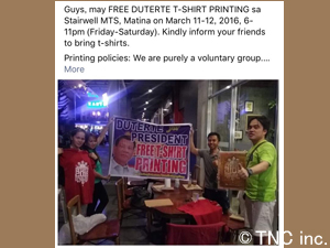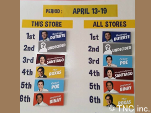 2016年5月、6年ぶりにフィリピン大統領選挙が行われた。元ダバオ市長のロドリゴ・ドゥテルテ氏が、マニラ市長のビナイ氏、政治家の娘・ポー女史、前大統領アキノ氏の右腕・ロハス氏などを抑えて当選。選挙の状況は連日、新聞やFacebookなどで取り上げられ、賑わいを見せていた。さらに選挙関連の商品やサービスも登場。セブンイレブンでは、店内で販売しているドリンクのカップに各候補者を印刷し、人気投票を行うキャンペーンを展開。ドゥテルテ氏を応援する団体は、ドゥテルテ氏のTシャツを1枚300ペソ(約690円)で販売する他、無地のTシャツにプリントするサービスも話題となった。