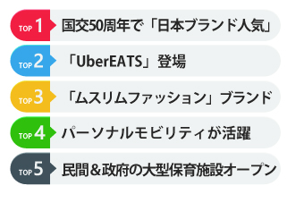 政府と民間による大規模保育施設や政府がリリースする生活向上アプリ、「スマート・ネイション」計画など、政府による改革やイノベーションを受け入れる国民性で、2017年も政府主導で新たな公共サービスが生まれることが予想される。また、今回ランクインしたパーソナルモビリティは歩行者との接触事故が多発しているため、法律による規制が進むものと思われる。