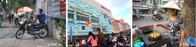 2016年7月30日、ホーチミン高島屋がオープン。既存のデパートに比べてブランド店や高級レストランなどのテナントが多く入居しており、館内には流行に敏感な女性や、身なりの良い家族など、富裕層・アッパークラス層を中心に支持されている。2014年1月に1号店をオープンしたAEONも着々と店舗を増やしており、2016年7月には国内4号店となるAEON MALL Binh Tan(イオンモール・ビンタン)をオープン。ホーチミン市とハノイ市で展開する一方で、日本の東急グループと地場企業のBecamex(べカメックス)の合併会社「べカメックス東急」が都市開発を進めるビンズン省にも展開するなど、順調にベトナム各地への展開を進めている。2010年に進出したファミリーマートも順調に店舗を増やしており、現地でライセンスエージェンシーとのコラボレーションによる「ドラえもん中華まん」シリーズが好評。そのほか、バインミーやソイ(おこわ)など、ローカライズメニューを着々と増やしている。価格はいずれも10,000~20,000ドン(約50~100円)前後。次いで日本国内コンビニ業界最大手のセブンイレブンも2017年のベトナム進出を発表。ホーチミン市内有数の観光地・ベンタイン市場にも近い交差点では、うどんの丸亀製麺、串カツ屋のまんまる、そしてシンガポール系の日本食店と、ベトナム国内への日系企業の進出が盛り上がりを見せている。
