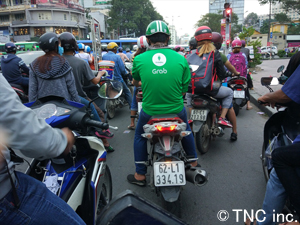ベトナムのバイク保有率は世帯で86%(2014年・米シンクタンク・Pew Research Center調べ)と世界44ヵ国・地域中でタイに次ぎ2位の、世界でもトップクラスのバイク利用国。一方で、学生や妊婦などバイクを持たない人、乗れない人もおり、「Xe om」と呼ばれるバイクタクシーには一定の需要があった。しかし、運転手の中には決して衛生的とは言えない身なり、値段交渉によるトラブル、外国人旅行者にとっては英語が通じないなど、問題も少なくなかった。そこに登場したGrab Bikeによるサービスは、これまでバイクタクシーが抱えていた問題を解決し、「バイクはあるがお金はない」という学生を中心とした若者の雇用も創出し、爆発的に普及。価格設定が安く、混雑時などのなかなかつかまらない際にはチップを追加することができるなど、現地の商習慣に合ったローカライズも進んでいる。