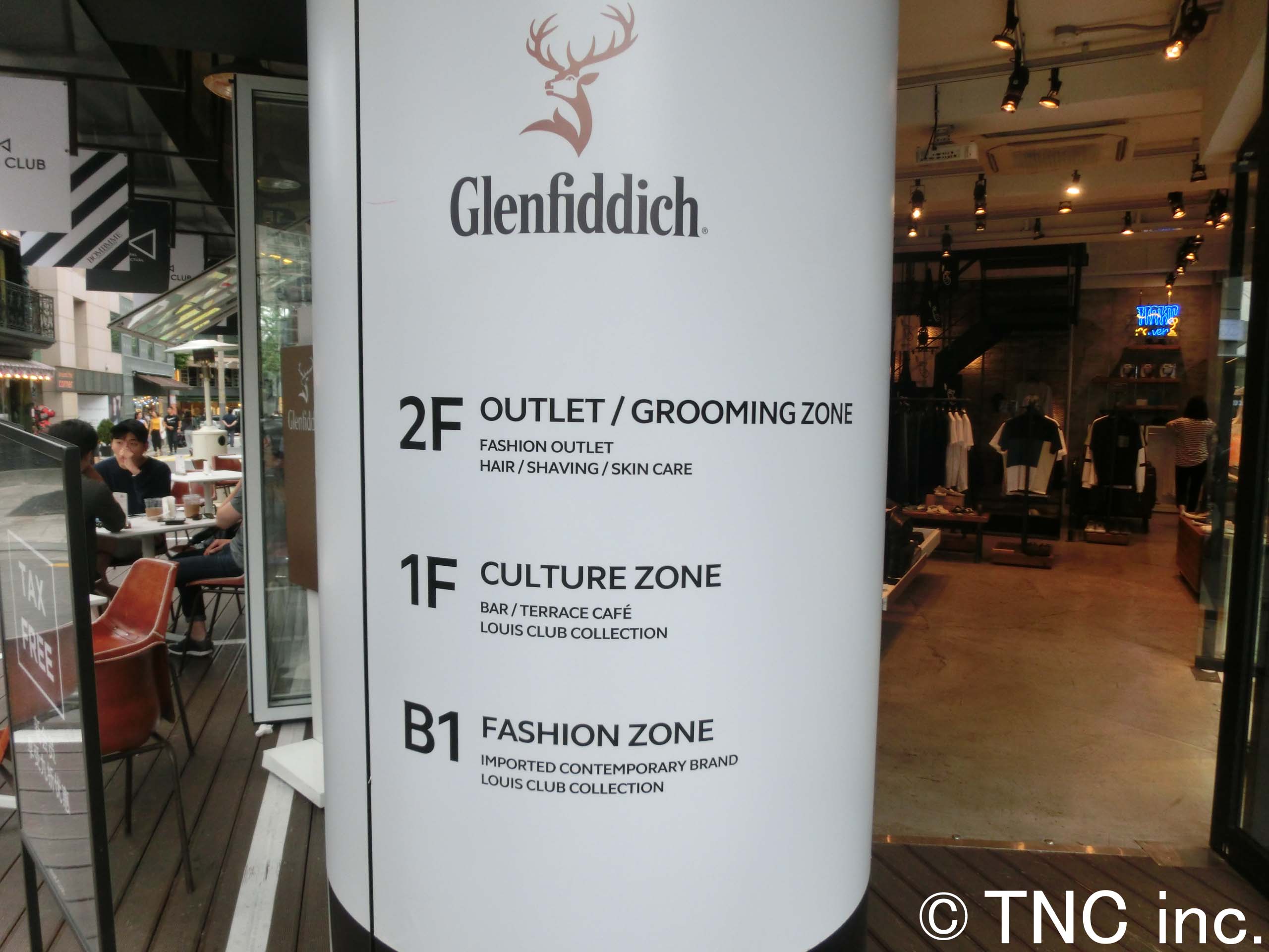 ハイセンスな男性向けショップ「LOUIS CLUB」の場合は、地下1階がアパレルを販売するファッションゾーン、地上1階にはスコッチウイスキーブランド「Glenfiddich」とコラボレーションしたバー/テラスカフェスペースを設置。2階はグルーミングゾーンとして男性向けスキンケア・ヘア・シェービング商品等を販売しています。