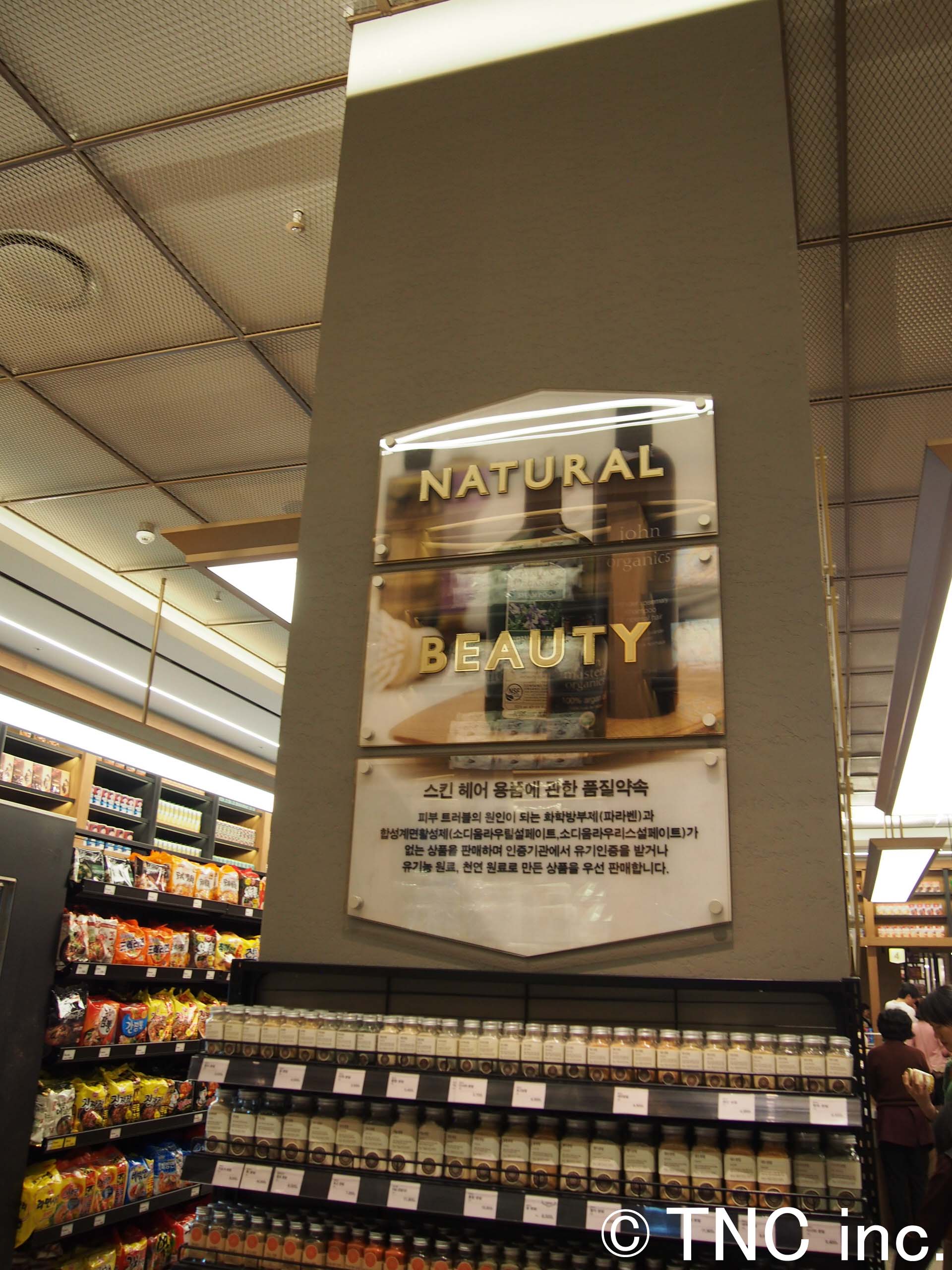 「ARTISAN DELI」や「NATURAL BEAUTY」といった最新のグルメトレンドを表すキーワードで売場を明確に区分し、関連商品を陳列