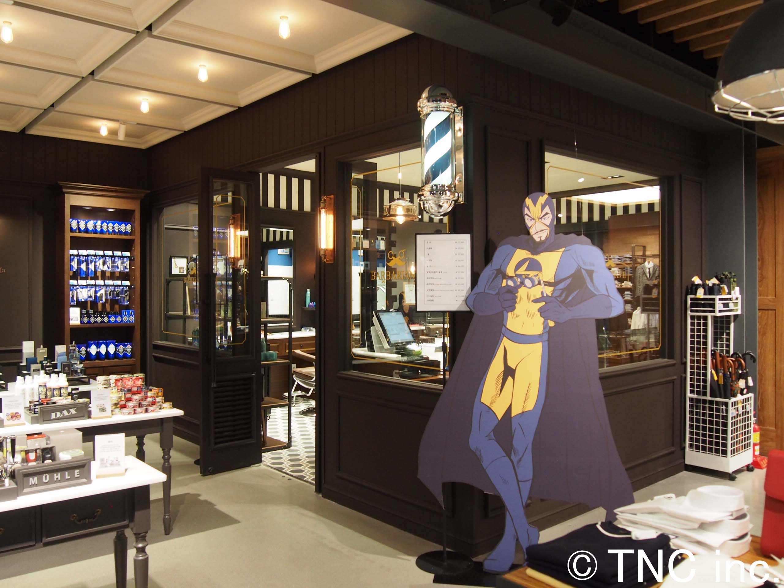 店内にある「ELECTRO BAR」では、ひと休みしてアルコールを楽しむことができる。日本にはないスタイル(左)、さらに、グルーミングゾーンも設置されており、メンズコスメ販売とともに紳士向けのバーバー(理髪店)まで存在する(右)