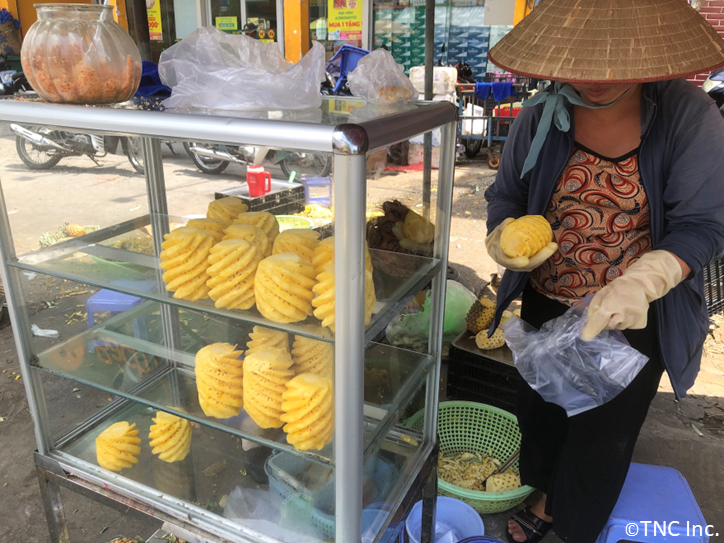 ベトナム国内7カ所でショッピングモールを展開する「イオン」では、スーパーマーケット利用の際にレジ袋不要で1,000ドン(約6円)を合計金額から差し引くサービスを実施。また、月に1度「グリーンディ」を設定し、エコバッグの利用を促進している。「Emart」や「Mega Market」など外資系スーパーや地場大手の「Co.opmart」や「Bach Hoa Xanh」などでもレジ袋の軽減への取り組みを進めている。しかし、市場や屋台など従来型の小売店では依然としてビニール袋の使用の制限はなく、レジ袋を端緒とする環境への取り組みや関わり方は今後の生活者にどのように変化していくか、注目されるところである。